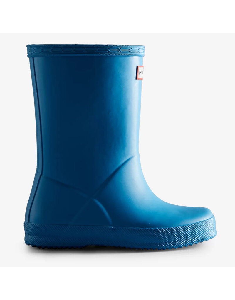 The Kids First Classic Rain Boot is perfect for puddle splashing. Handcrafted from natural rubber, a flat sole and rounded toe gives little feet room to move and the updated 100% recycled polyester lining ensures complete comfort for every adventure. These kids blue rain boots are fully waterproof and feature a specially developed tread to reduce slipping.